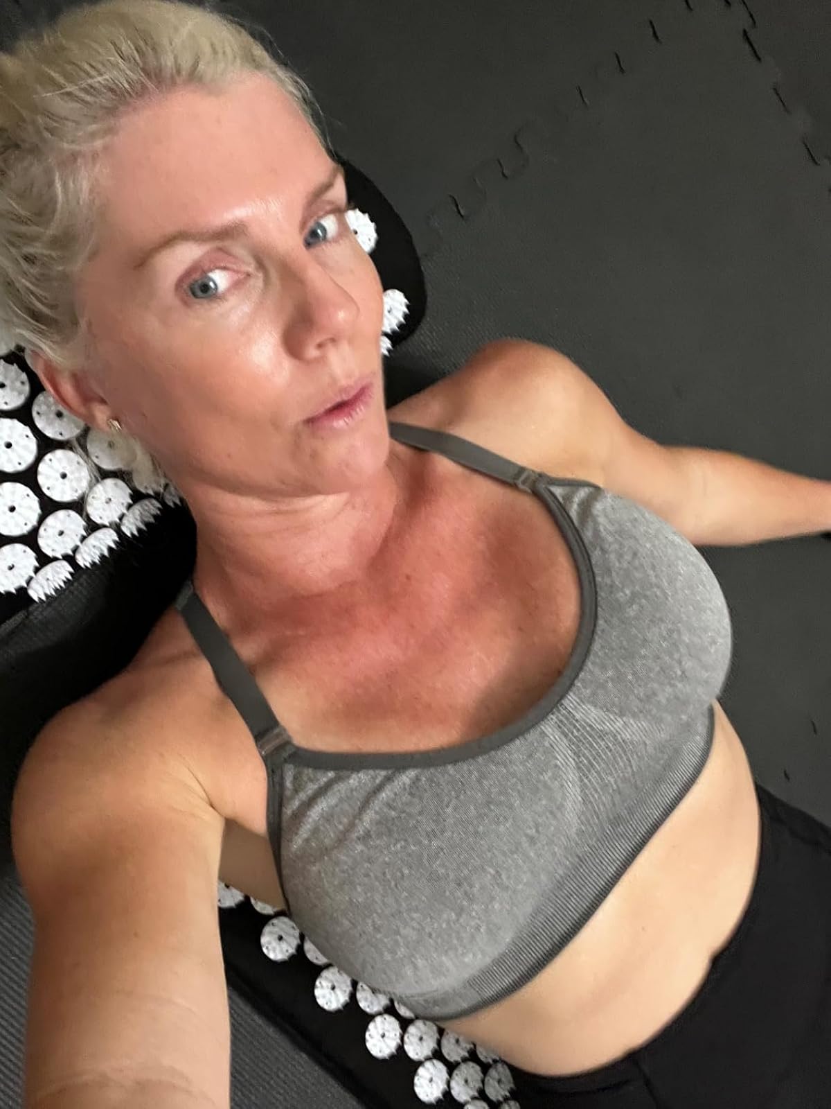 Place the mat on a flat surface. For your first 2-3 sessions, wear a thin shirt or place a light towel over the spikes to soften the intensity. Lie down slowly, distributing your weight evenly.
